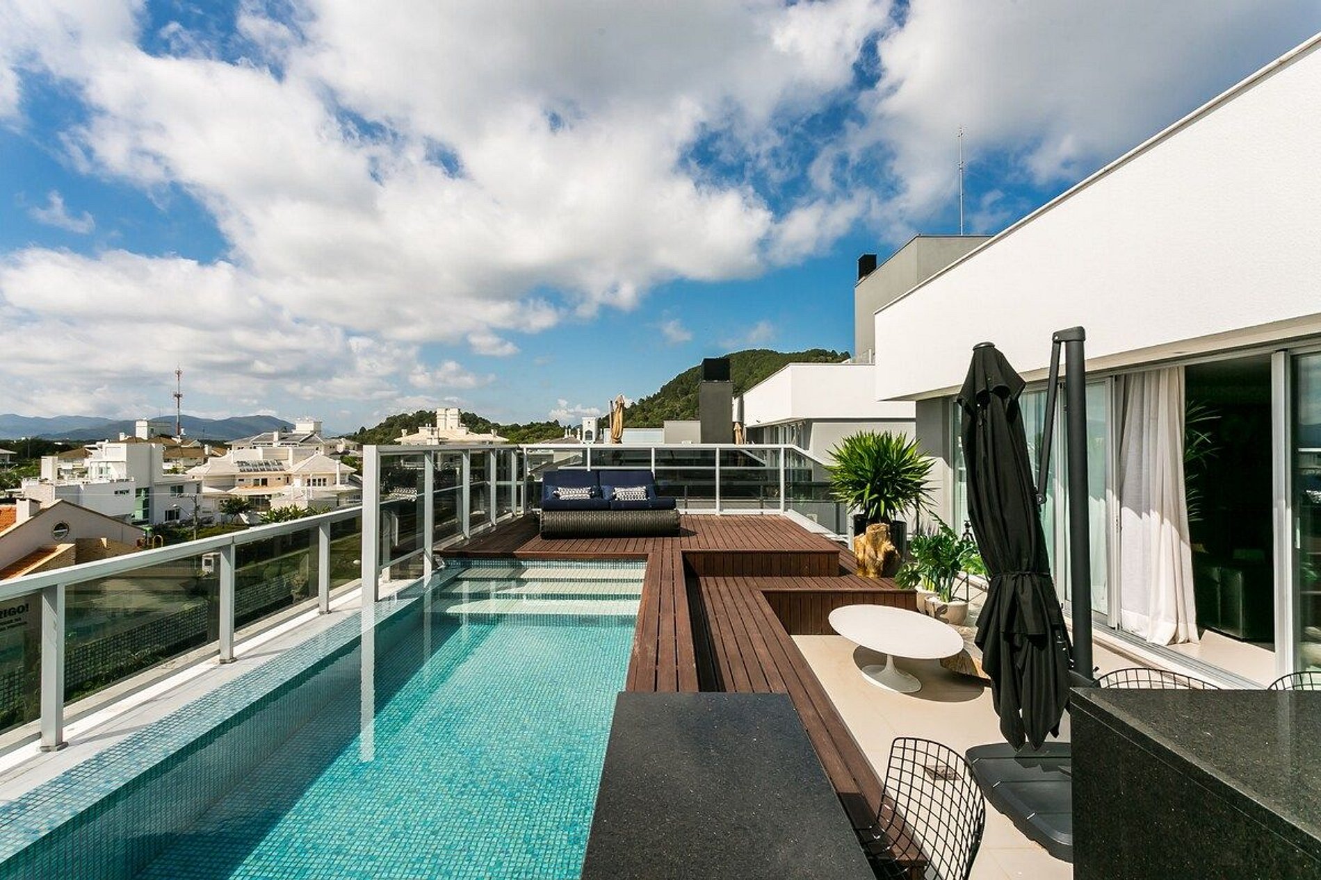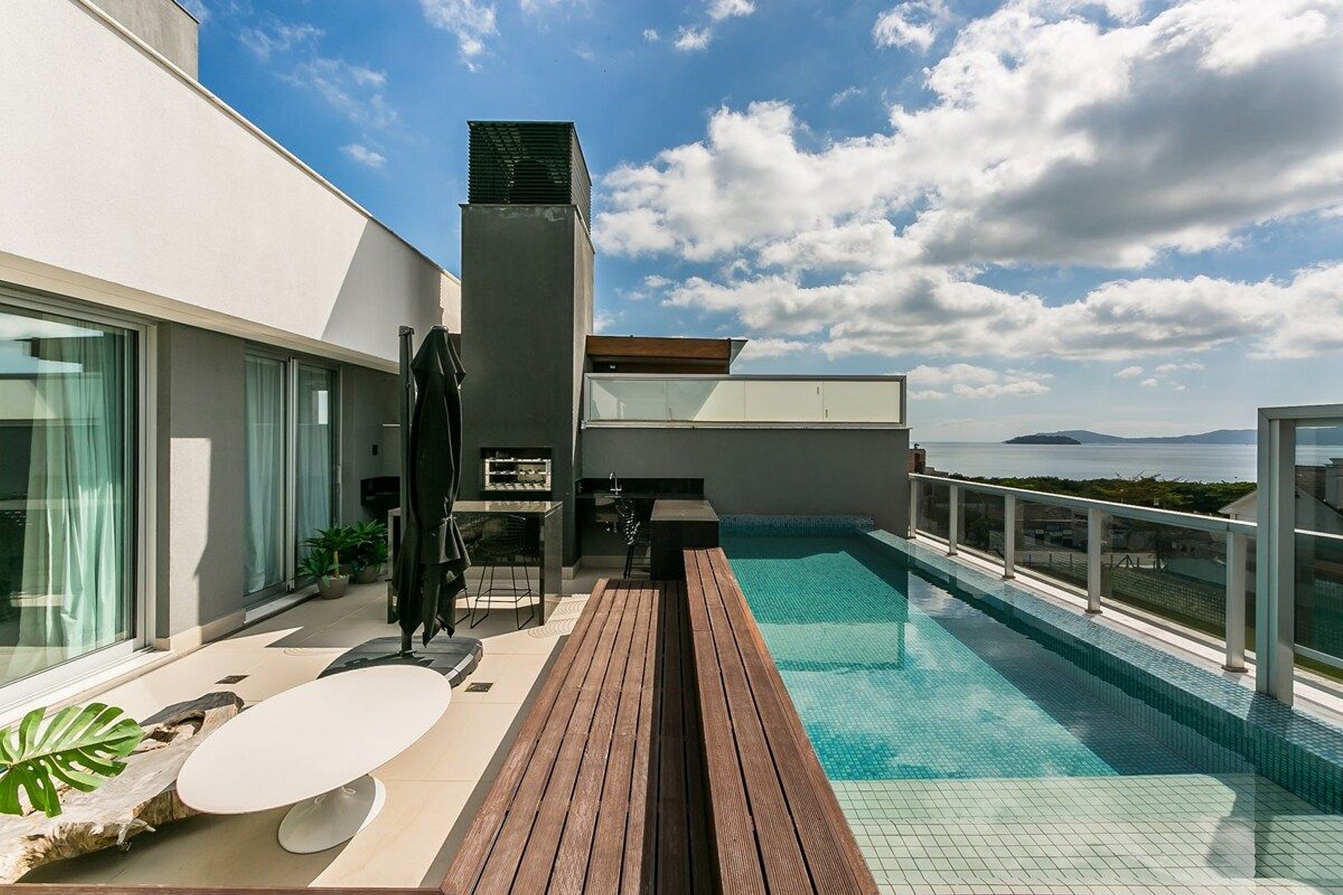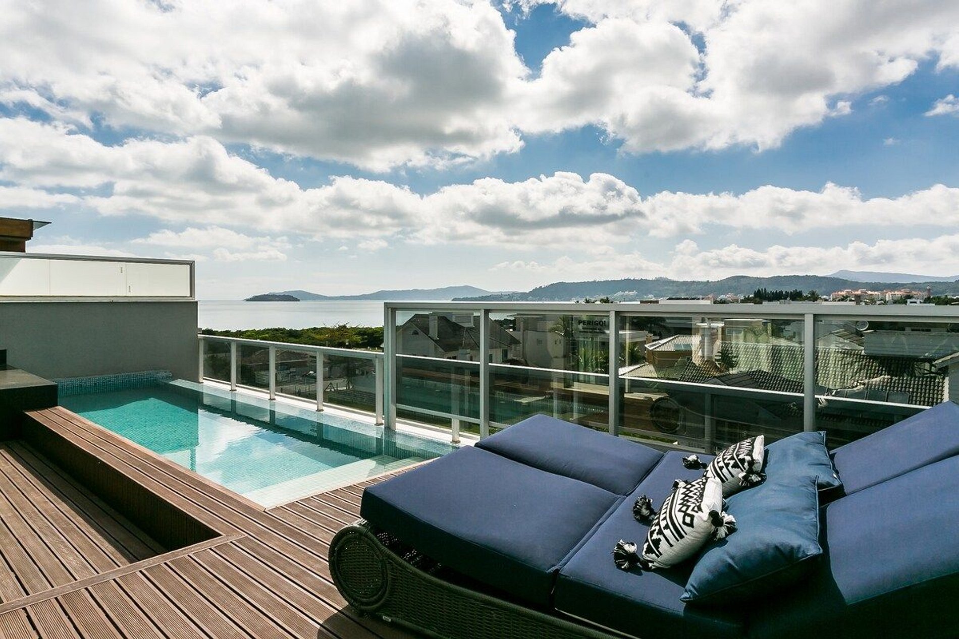 Cobertura em Jurere internacional com 3 suites confortáveis, sala ampla, ar condicionado em todos os cômodos, cozinha integradas, varanda com vista para o mar, piscina incrível privativa aquecida com vista, deck dos quartos com vista para a área do condominio. Bairro tranquilo. We speak english y Hablamos español!