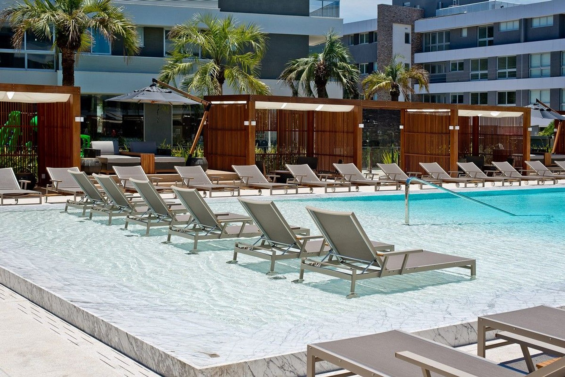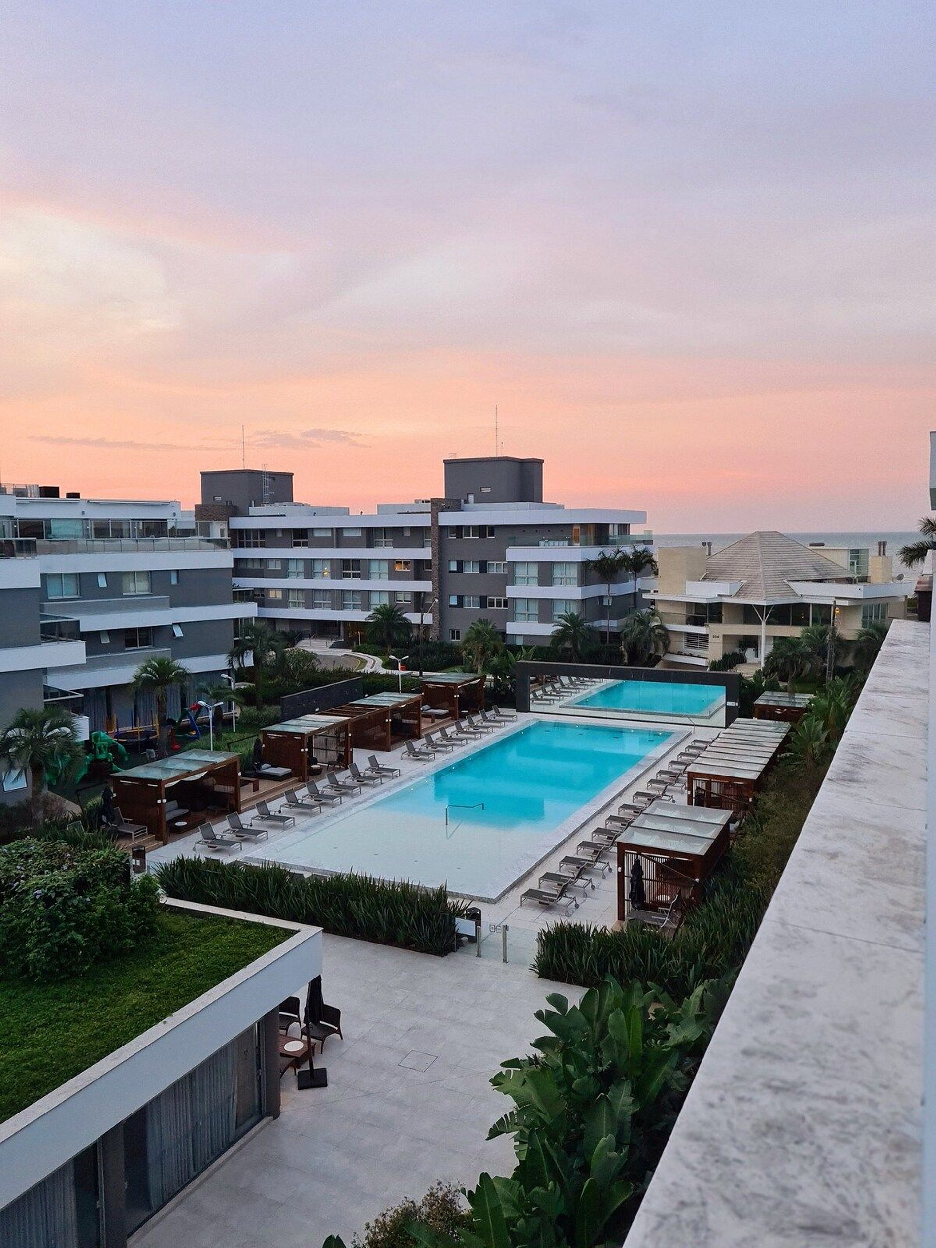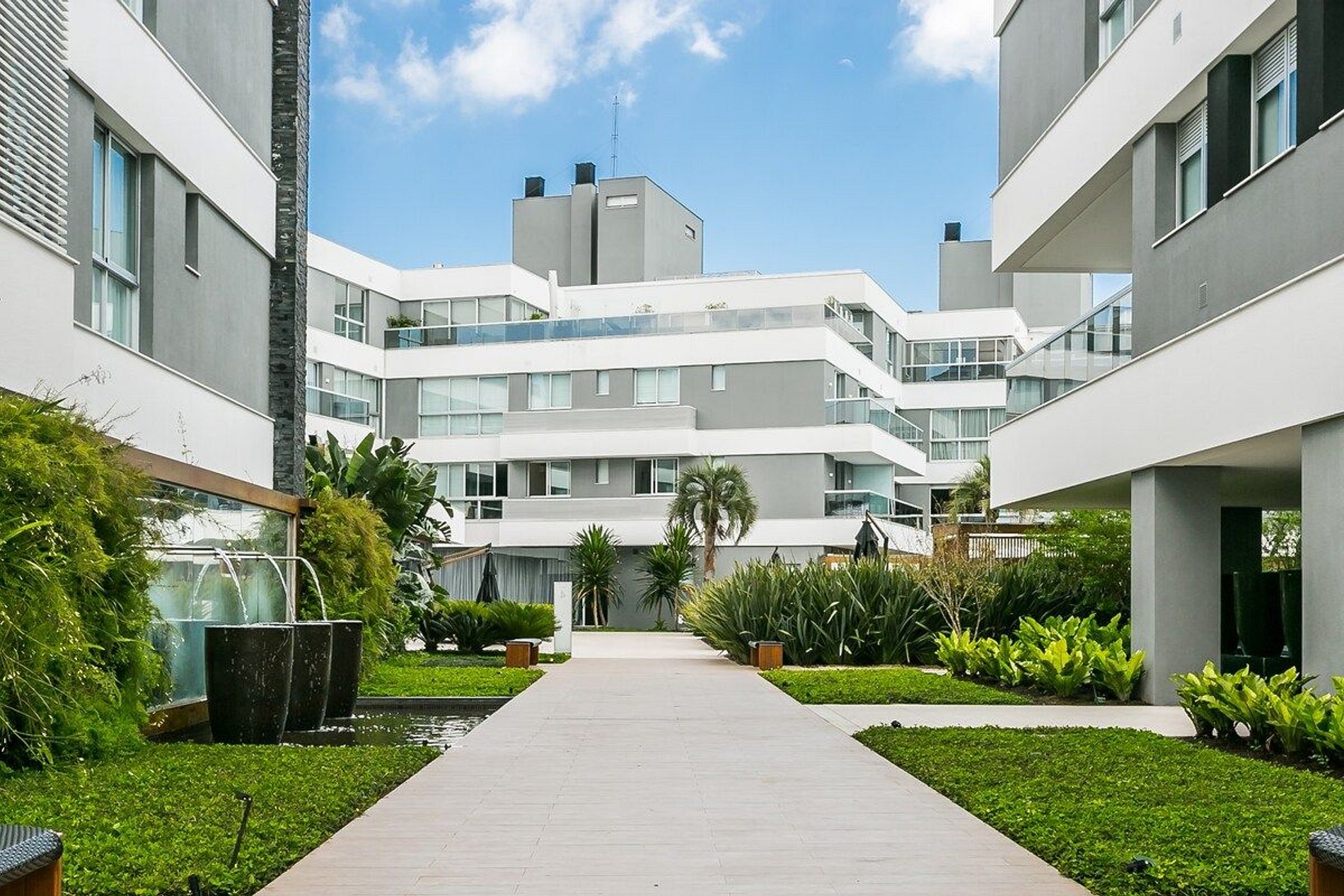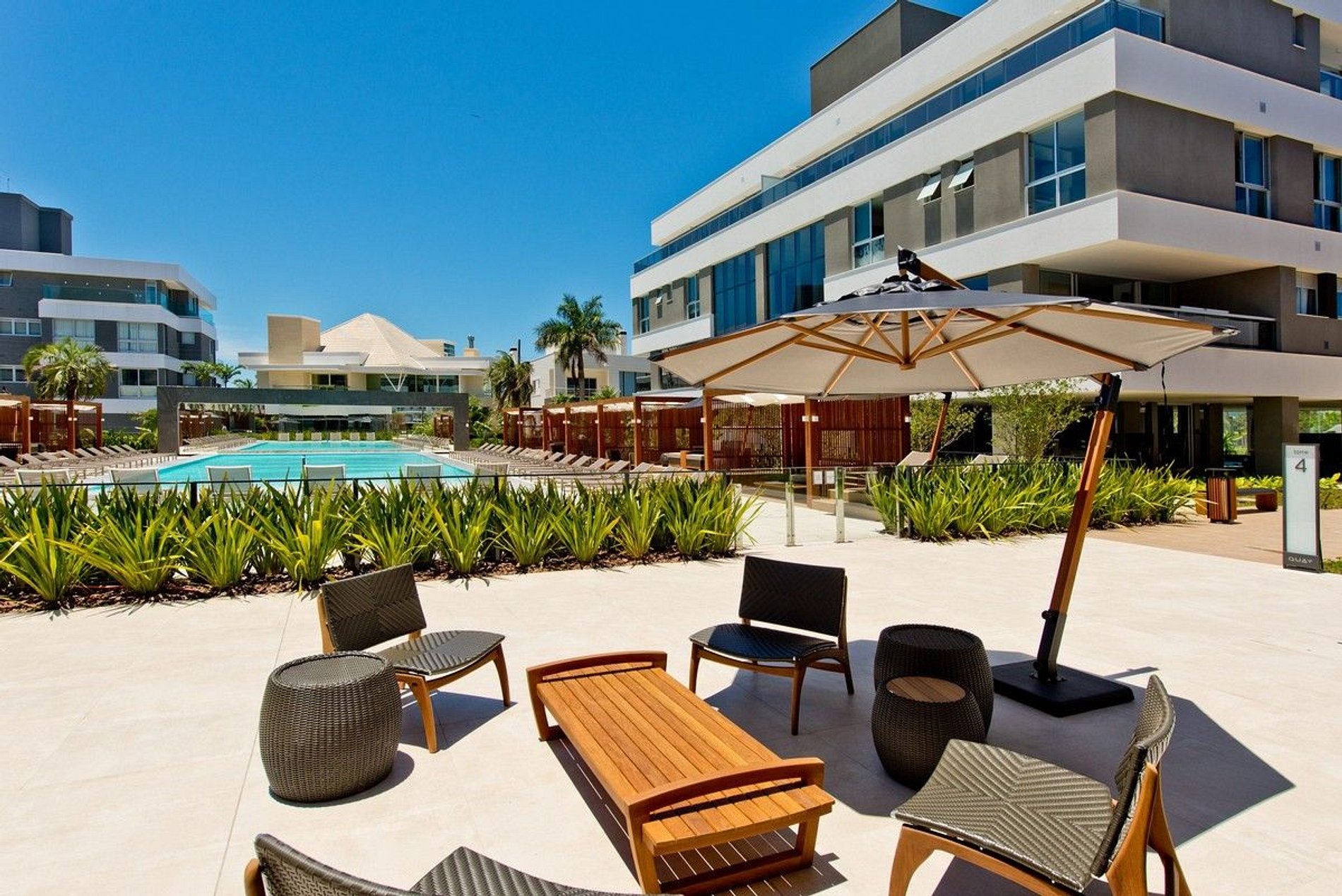 O Condomínio dispõe piscina e bangalos, jacuzzi, bar e lounge, acesso praia, praça fogo, wine bar, espaco kids, sauna, fitness center completo,