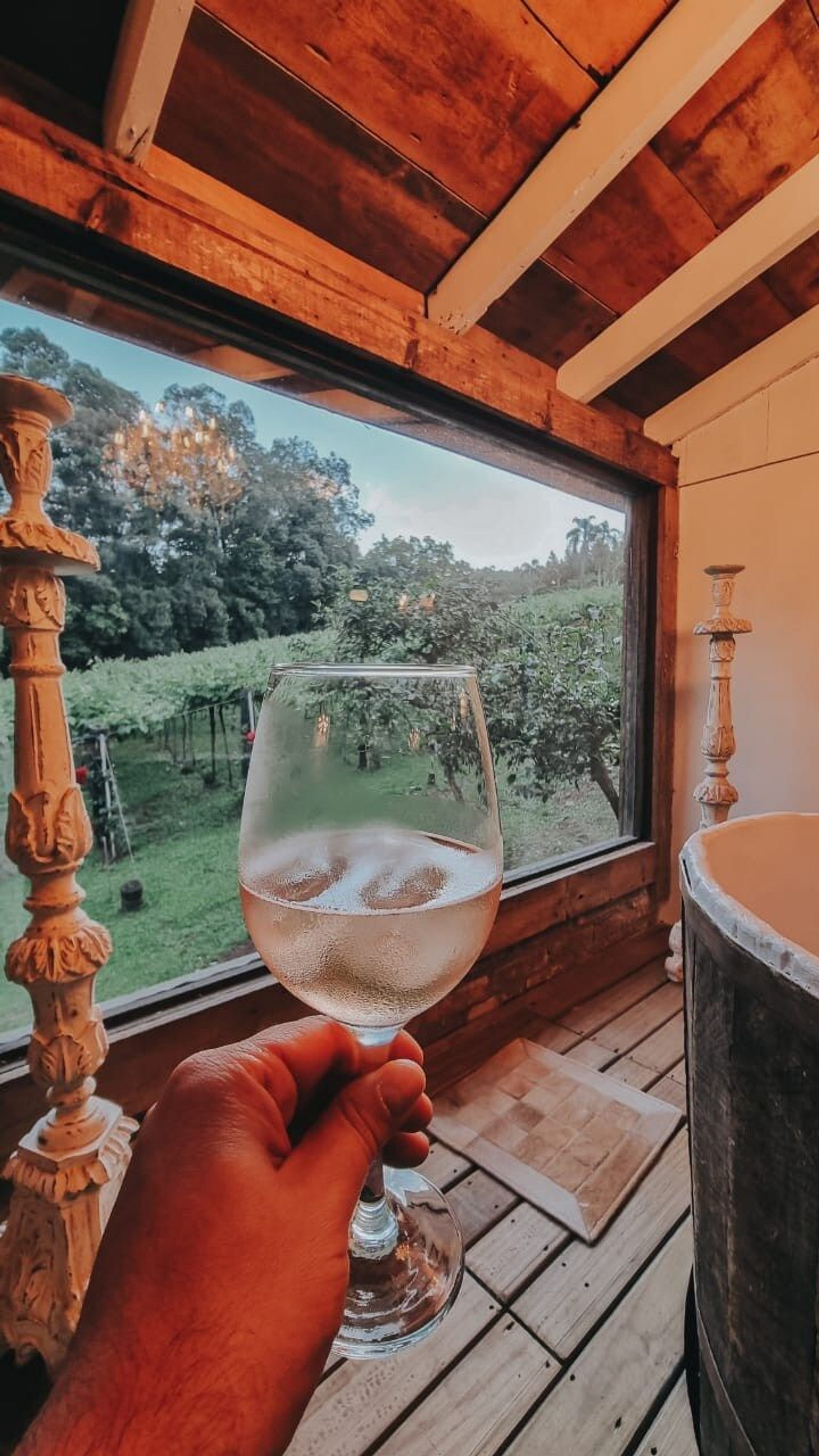 Casa do suco Entre 1947 até anos 80 ambiente abrigou cenas onde o cotidiano da familia Perini, agricultores dedicados a produção primária acontecia o preparo de limpeza das garrafas para envazar, a produção do suco de uva, da grappa e do vinho. Uma pequena vertente jorrava agua em uma "tina". Ali tudo era conduzido por cantorias. Nada passou desapercebido. A "tina" virou um ofurô. O fogão onde fervilhava a uva para o suco, está presente mas cabe a você viver a poesia do ambiente. Vista vinhedo