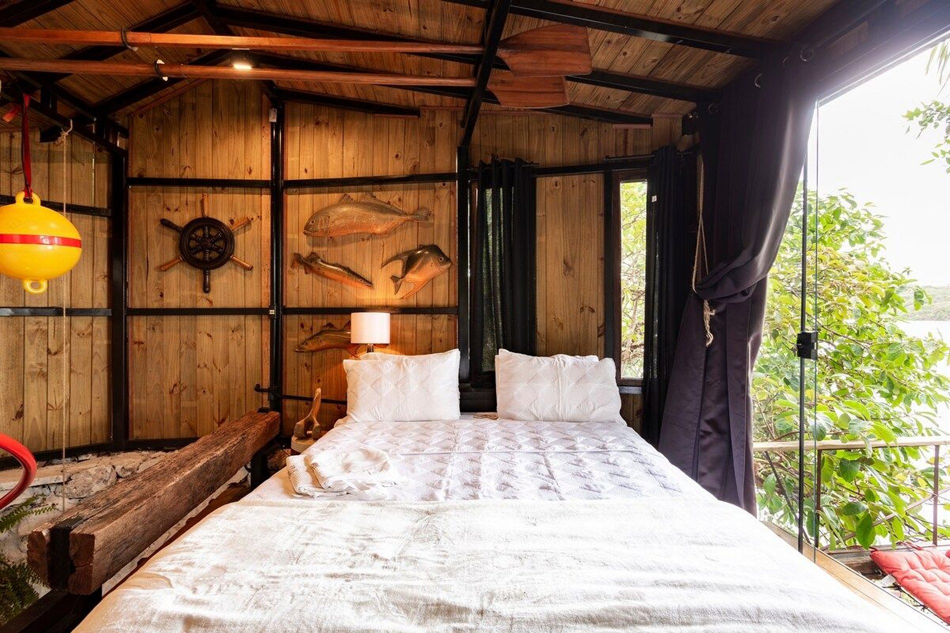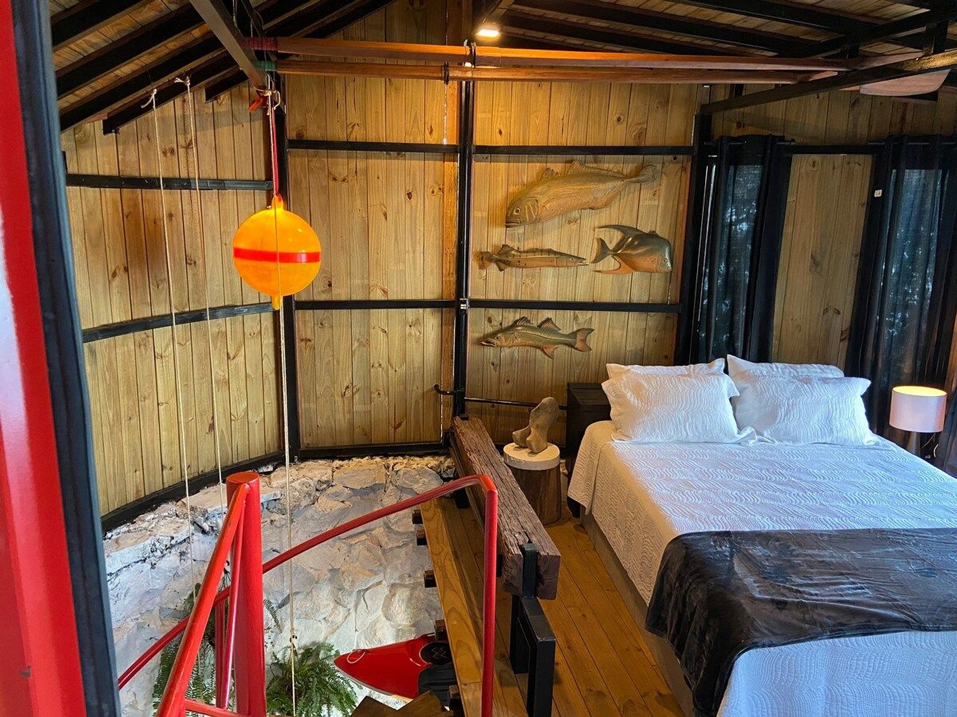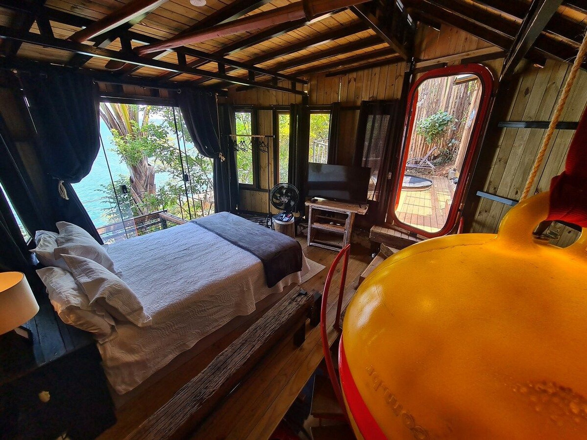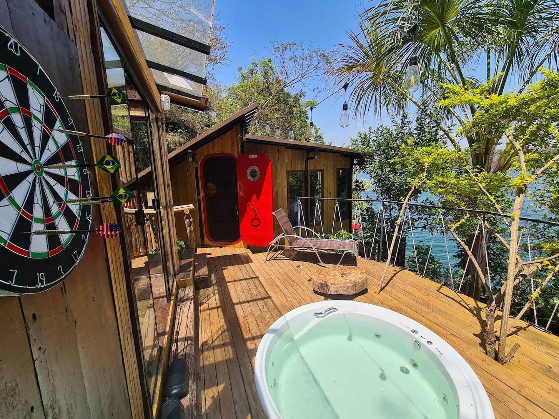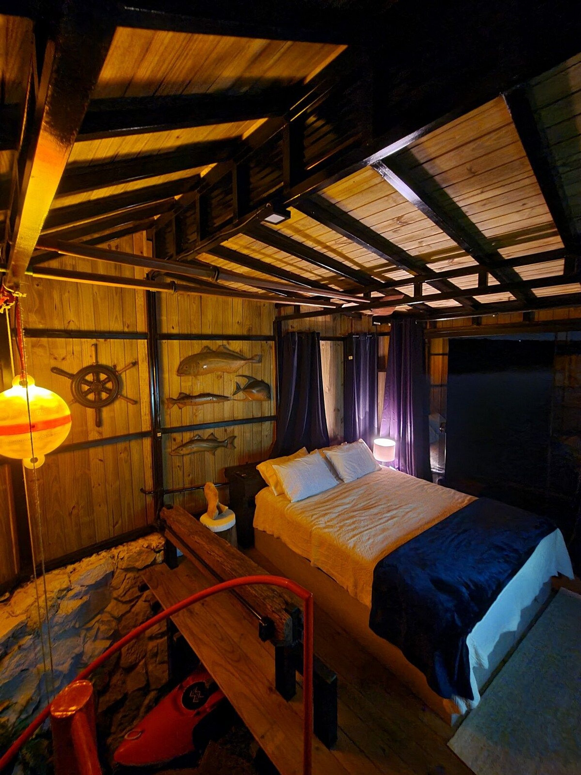 Microcasa Casa Barco na beira do lago com vista incrível e interação natureza. Possui sauna úmida, hidromassagem em deck céu aberto, praça do fogo e pier. Acesso a internet, equipada itens básicos, cozinha integrada no térreo e quarto no segundo andar, banheiro externo a casa. Oferecemos itens para finalização do café da manhã, cook top, forno elétrico, frigobar, cafeteira dentre outras comodidades. Roupa cama e banho fornecidas. Possibilidade de acesso lago não privativo. Caíque decorativo!!!