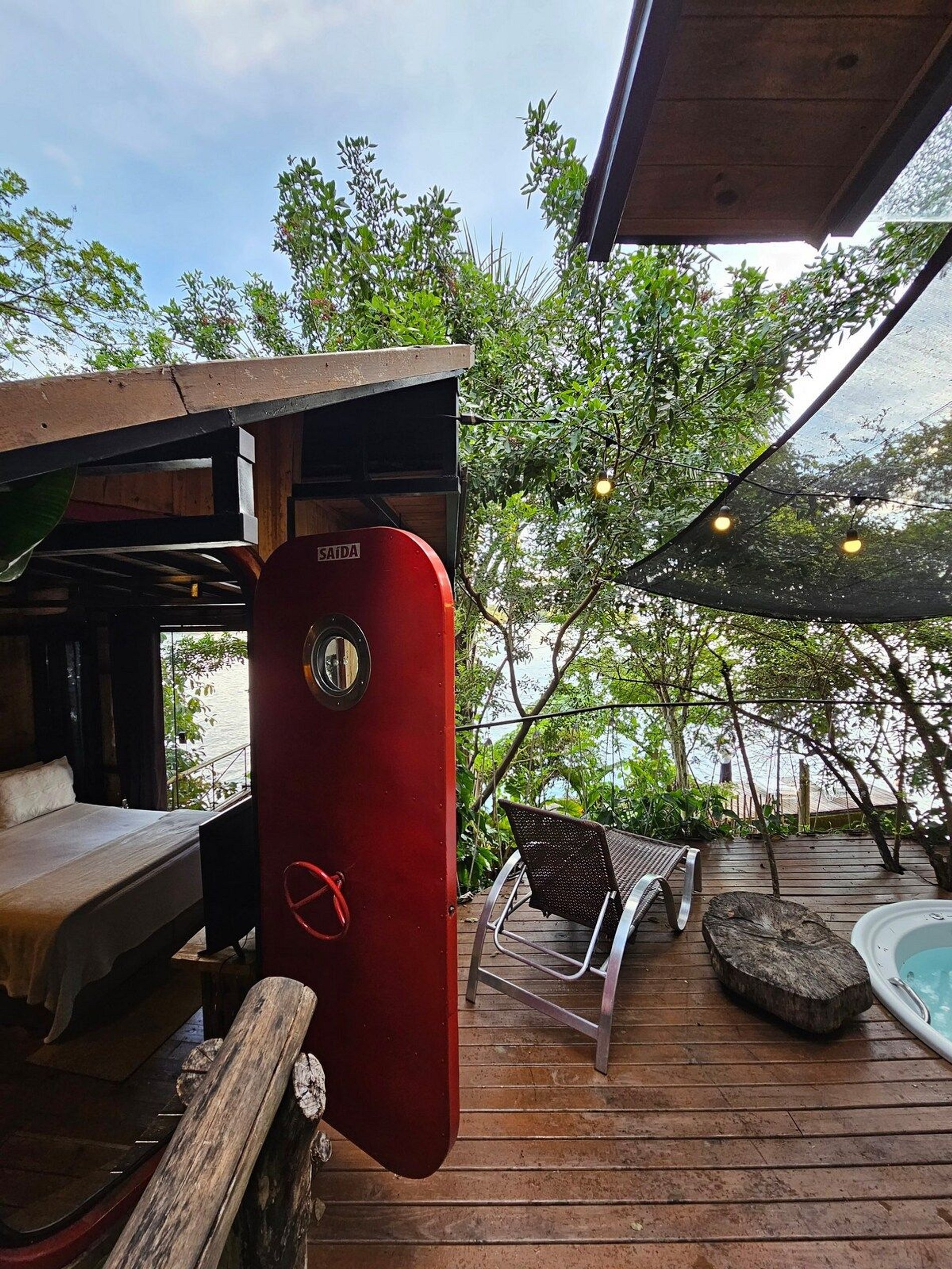 A microcasa fica em terreno de 8.000 m2 que possui outras casas no entanto cada um com sua total privacidade. No espaço temos animais silvestres: sarues, micos, capivaras, cães e gatos mansos. Importante Por ser um imóvel de locação por temporada não podemos esquecer que se trata de uma casa comum, com pontos fortes e fracos e sujeita a problemas como um vaso entupido, chuveiro queimado ou falta de energia elétrica na região. Cabe-nos prestar suporte quando o problema é interno, enviar alguém para o reparo ou tentar resolver a questão da melhor e mais ágil forma possível, mas é importante lembrar que nem sempre conseguiremos um profissional que atenda de imediato, da mesma forma que aconteceria em sua casa.